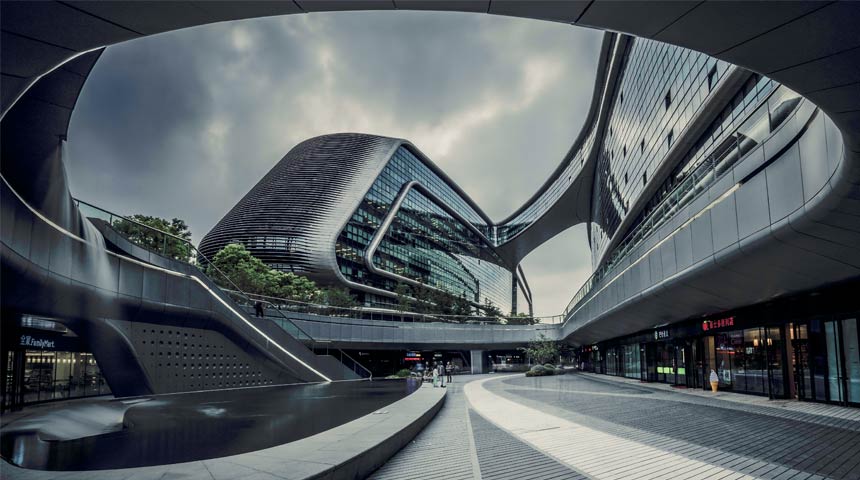 凌空SOHO占地8.6萬余平米、總建筑面積約35萬平方米,12棟建筑被16條空中連橋連接成一個空間網絡。凌空SOHO是SOHO中國與建筑設計師、普利茲克獎獲得者扎哈·哈迪德(ZahaHadid)聯手打造的第3個建筑精品。